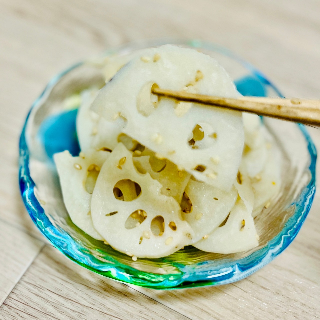 調理法は、薄く切った新れんこんを沸騰したお湯で1分ほど茹でるだけ。れんこん自体に甘みと旨みがあり、食感も良いので、そそのままサラダとして食べるも良し、梅肉和えもよし、軽く炒めてきんぴらにしても良し。