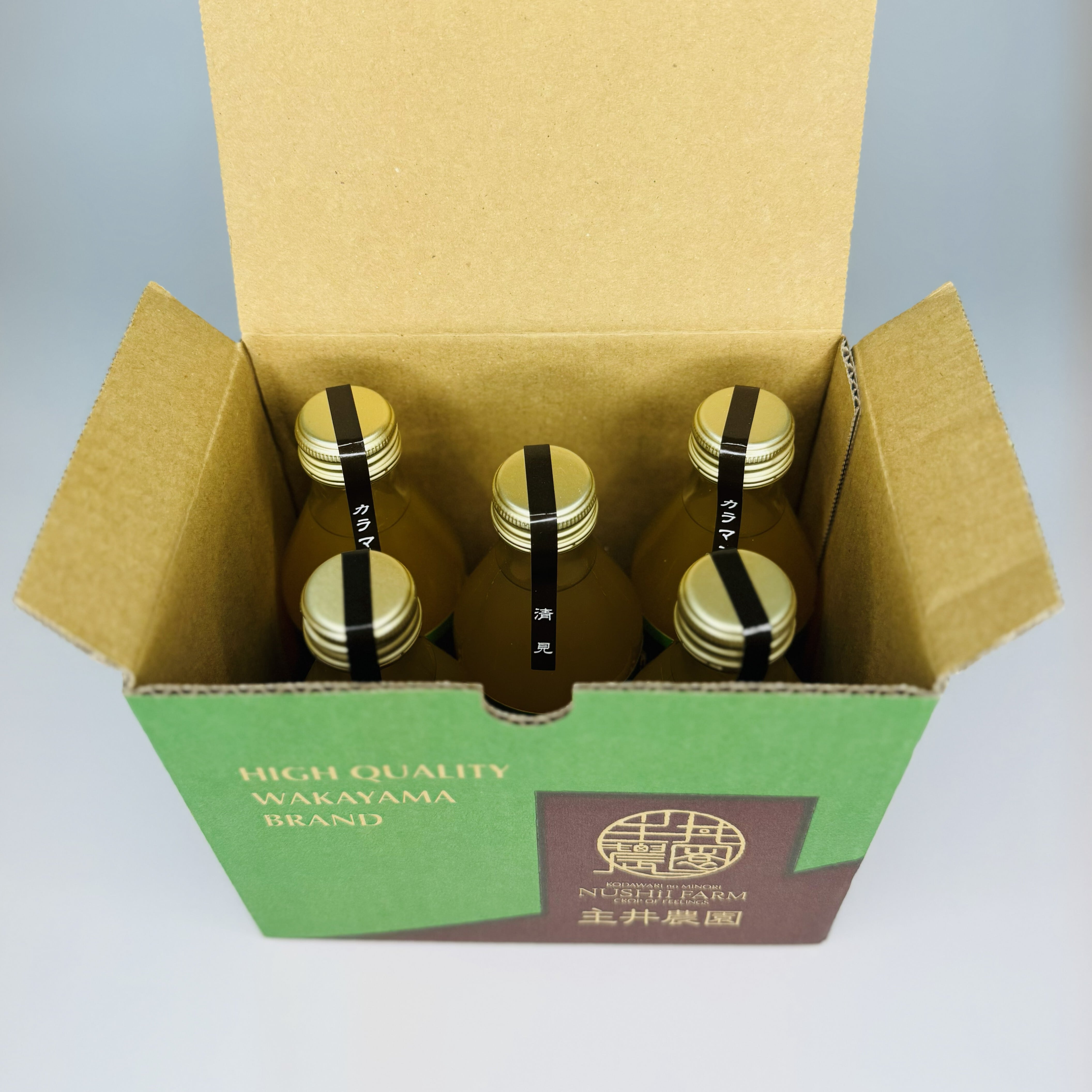 主井農園最高級ランクの温州みかん「松兵衛みかん」のジュースに、おまかせで季節の柑橘類のジュースをセットした100%ストレートジュースセット。