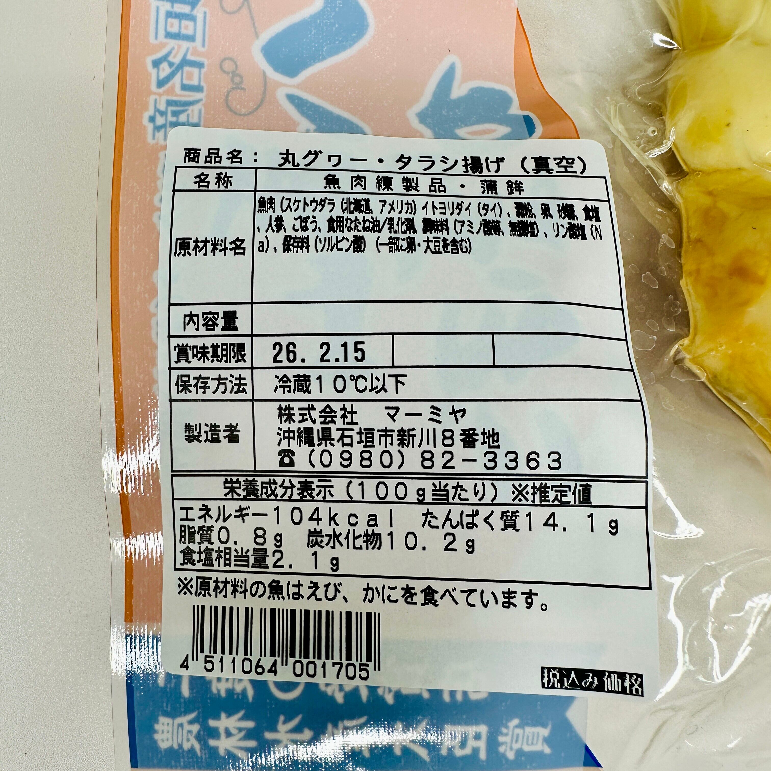 ・マルーグヮー、たらし揚げ:袋から取り出して耐熱皿に移し、軽く水気を加えたらラップをして600Wで1分程度温める。もしくは袋のまま4~5分くらい湯煎する。
