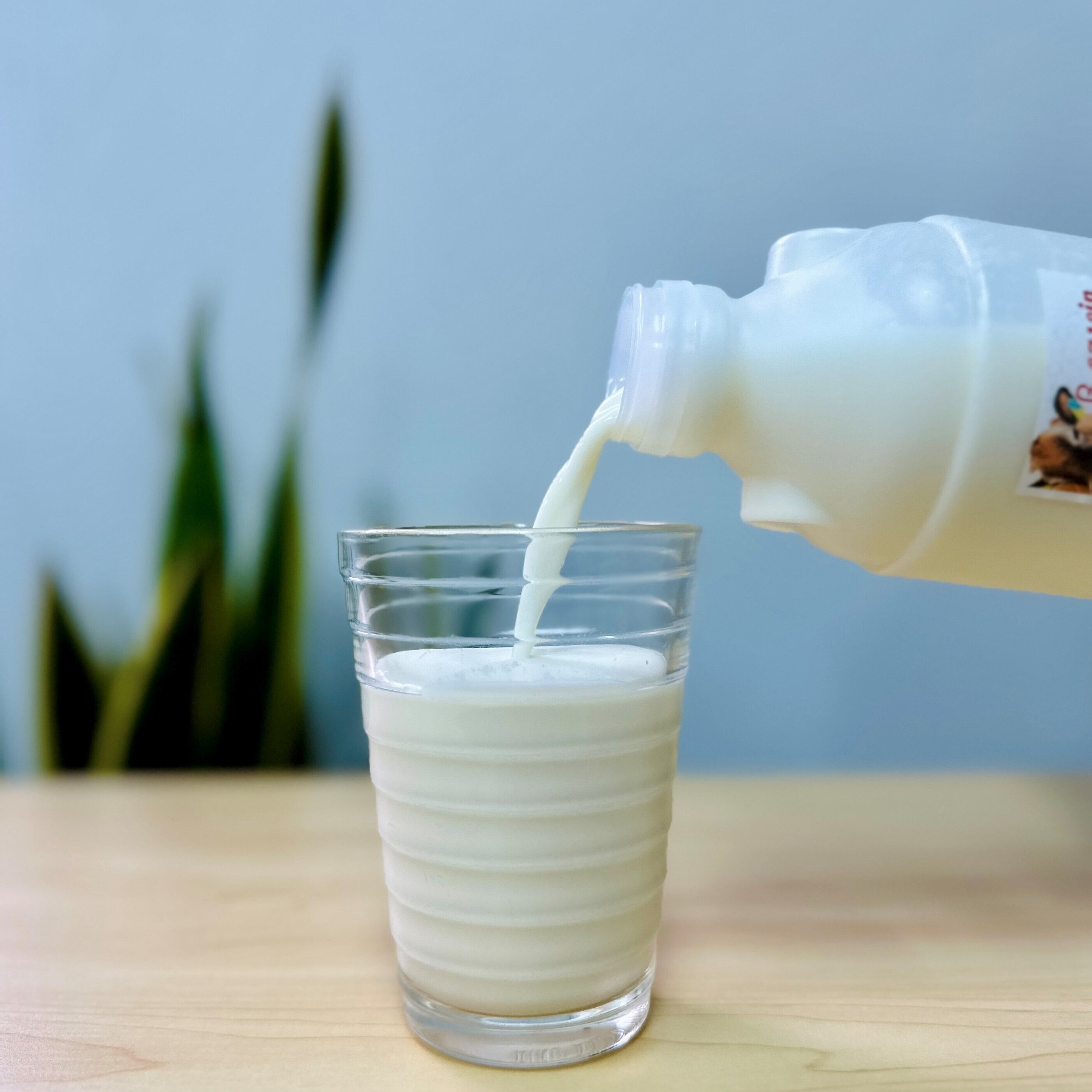※ジャージーミルクは乳脂肪率が高いため、ホモジナイズしていないノンホモ製法の場合、ミルクの中にクリームのかたまりが浮くことがあります。気になる方はよく振ってからお召し上がりください(温めるとクリームは熱で溶けます)。
